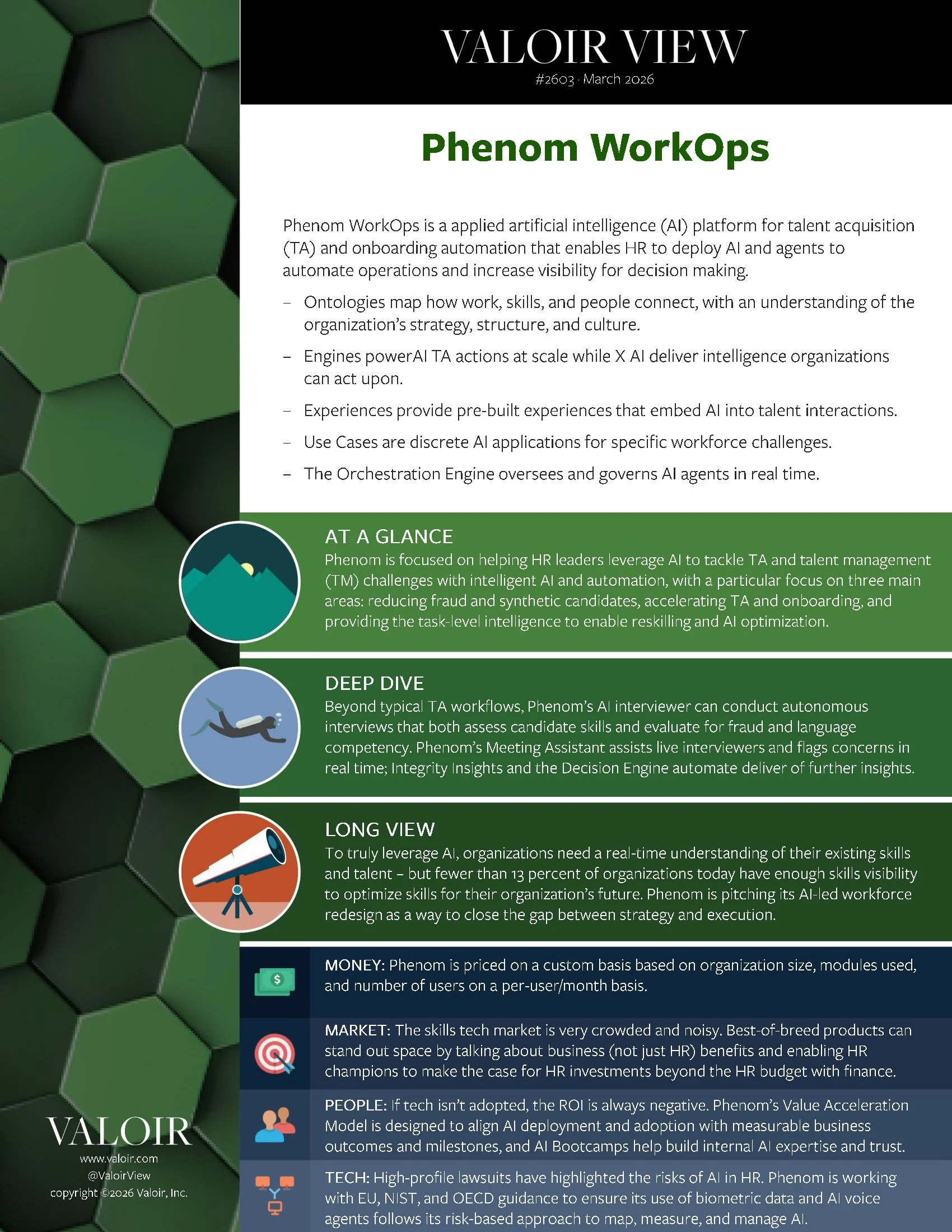 Phenom is focused on helping HR leaders leverage AI to tackle TA and talent management (TM) challenges with intelligent AI and automation, with a particular focus on three main areas: reducing fraud and synthetic candidates, accelerating TA and onboarding, and providing the task-level intelligence to enable reskilling and AI optimization. Read the Valoir View.